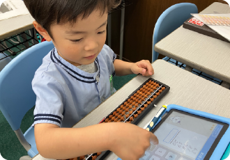 プリンス英米学院英語学童では、まずそろばんを「好き」になってもらえるように一人ひとりに丁寧に教えます。子どもたちは「スモールステップ」で自信を付けて、次々と新しいことを吸収していきます。 -