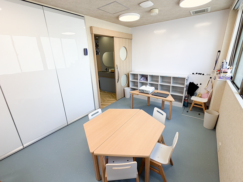 教室に一歩入ると、温かみのある木のデザインと、子どもたちが安心して過ごせる空間が広がります。